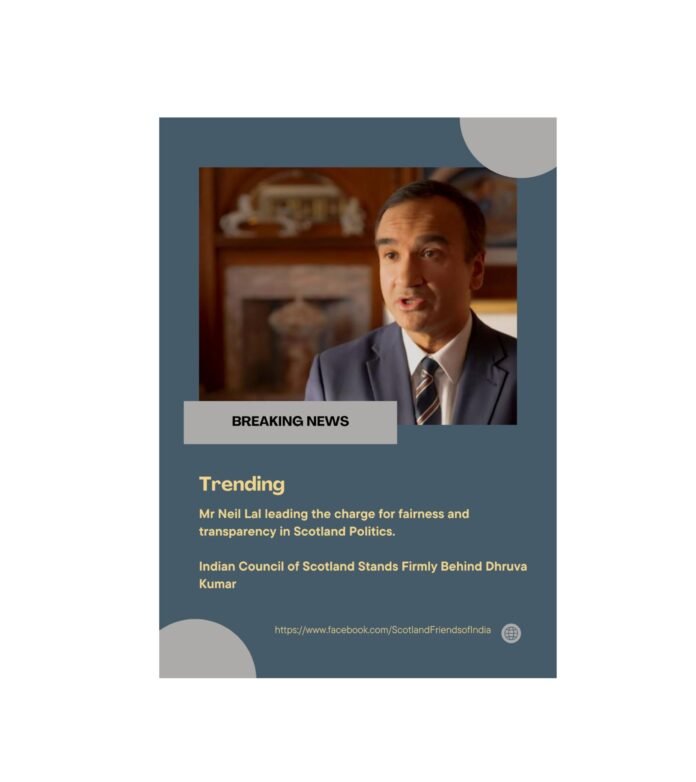In a powerful show of support, the Indian Council of Scotland and the United Kingdom has unequivocally backed Dhruva Kumar, the Alba Party MP candidate for Glasgow South, who has been subjected to unfair and unjust treatment. Neil Lal, the esteemed Chairman and President of the Indian Council, has emerged as a leading force in UK politics, demonstrating unwavering integrity and a commitment to justice.